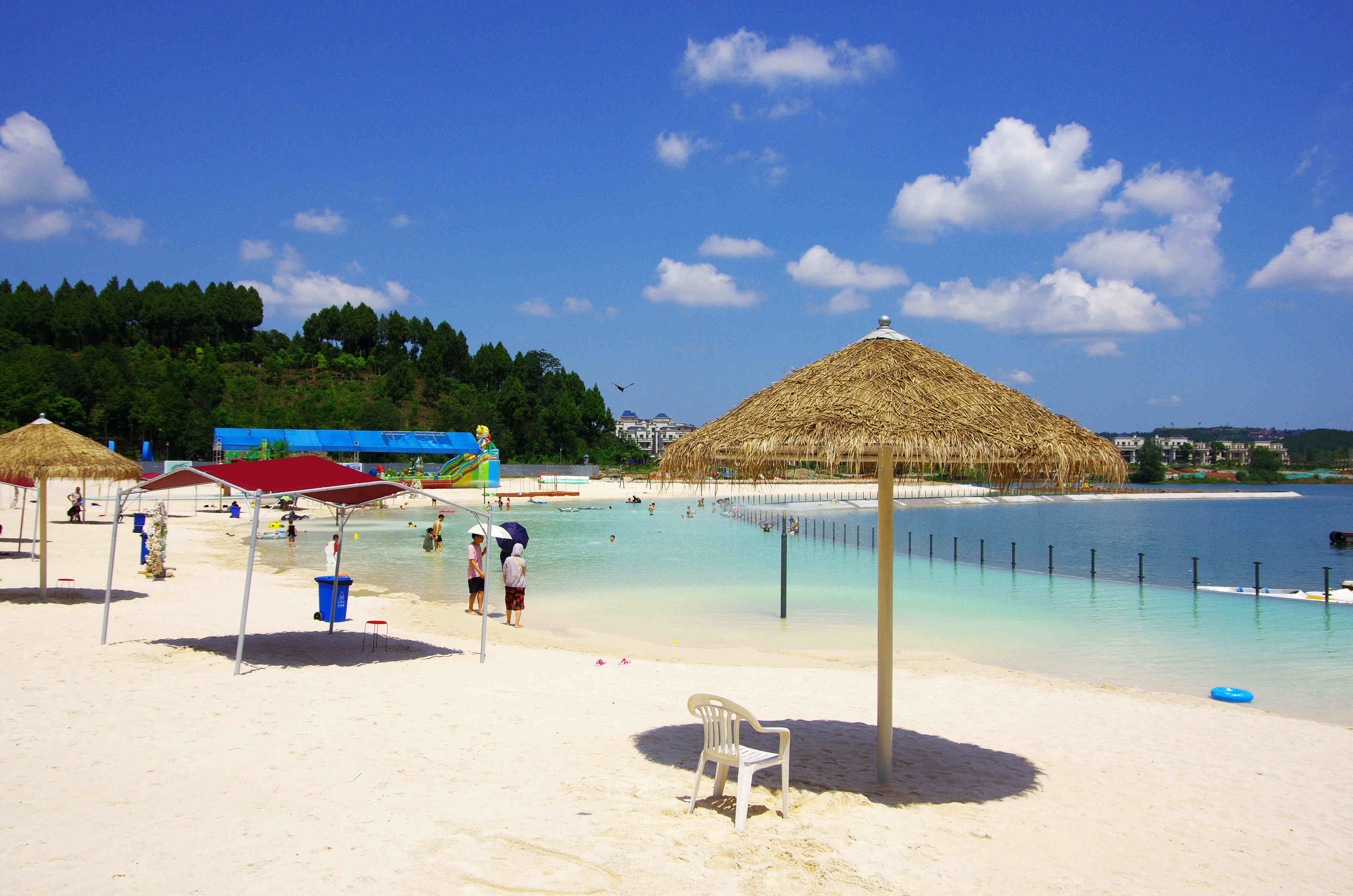 綿陽嘉成文化旅游有限公司是一家旅游開發(fā)公司,成立于2019年。 親水灣沙灘樂園項目由綿陽嘉成文化旅游有限公司開發(fā)運營,位于國家級水利風景區(qū)——綿陽市仙海水利風景區(qū),距綿陽市區(qū)15公里,車程約半個小時,是依托沉抗水庫建設的仙海風景區(qū)重點旅游項目。進入仙海風景區(qū)上坡向左進入環(huán)湖路前行1000米。項目總占地220畝,其中核心沙灘樂園占地100畝,現(xiàn)建成沙灘休閑、淺灘嬉水、水上運動,親子蹦蹦云、網(wǎng)紅多人秋千、人力過山車、水幕秋千、團隊拓展等項目十余個,還開設有特色中餐、仙海火鍋魚,自助燒烤等飲食項目。 近觀青山綠水,遠眺碧波蕩漾,清晨朝霞映翠、傍晚水天一色。親水灣沙灘主題樂園有可容納200人的沙灘會議室和30人的小型會議室;棋牌室16間; 商務KTV;餐飲中心可同時容納300人用餐;篝火晚會場地等,是婚禮壽宴、同學聚會、餐飲娛樂、商務會議、拓展培訓、家庭親子活動的首選之地。